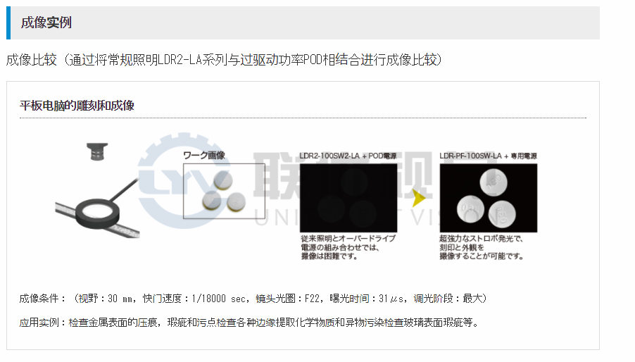 功率快閃照明PF系列,實現(xiàn)了“超強閃光燈發(fā)光” 環(huán)低角度類型來實現(xiàn)矩最大照度千萬LX,向速度,提高了測試的準確性對應于更換氙閃光燈的,使用專用電源對發(fā)光定時進行微調(diào) ,可以精確地調(diào)節(jié)相機快門的發(fā)光應用示例:標記,刮擦,金屬表面污垢檢查,各種邊緣的提取等。