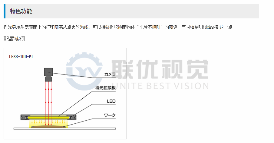 緊湊型外殼中的照明非常適合檢查鏡面物體的不均勻性。可以根據(jù)檢查條件選擇兩種間距寬度。1mm型(型號后綴:A),2mm型(型號后綴:B)*本產(chǎn)品是定做的。