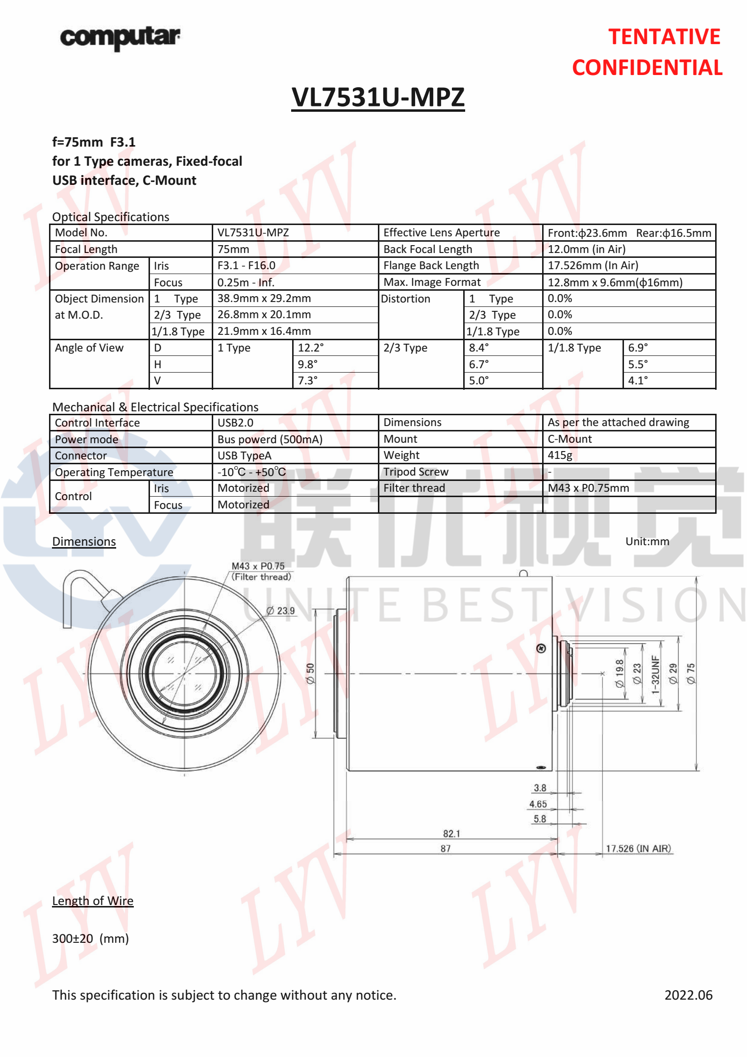 全新電動鏡頭,可通過 USB 供電和控制(適用于 I2C 版本)