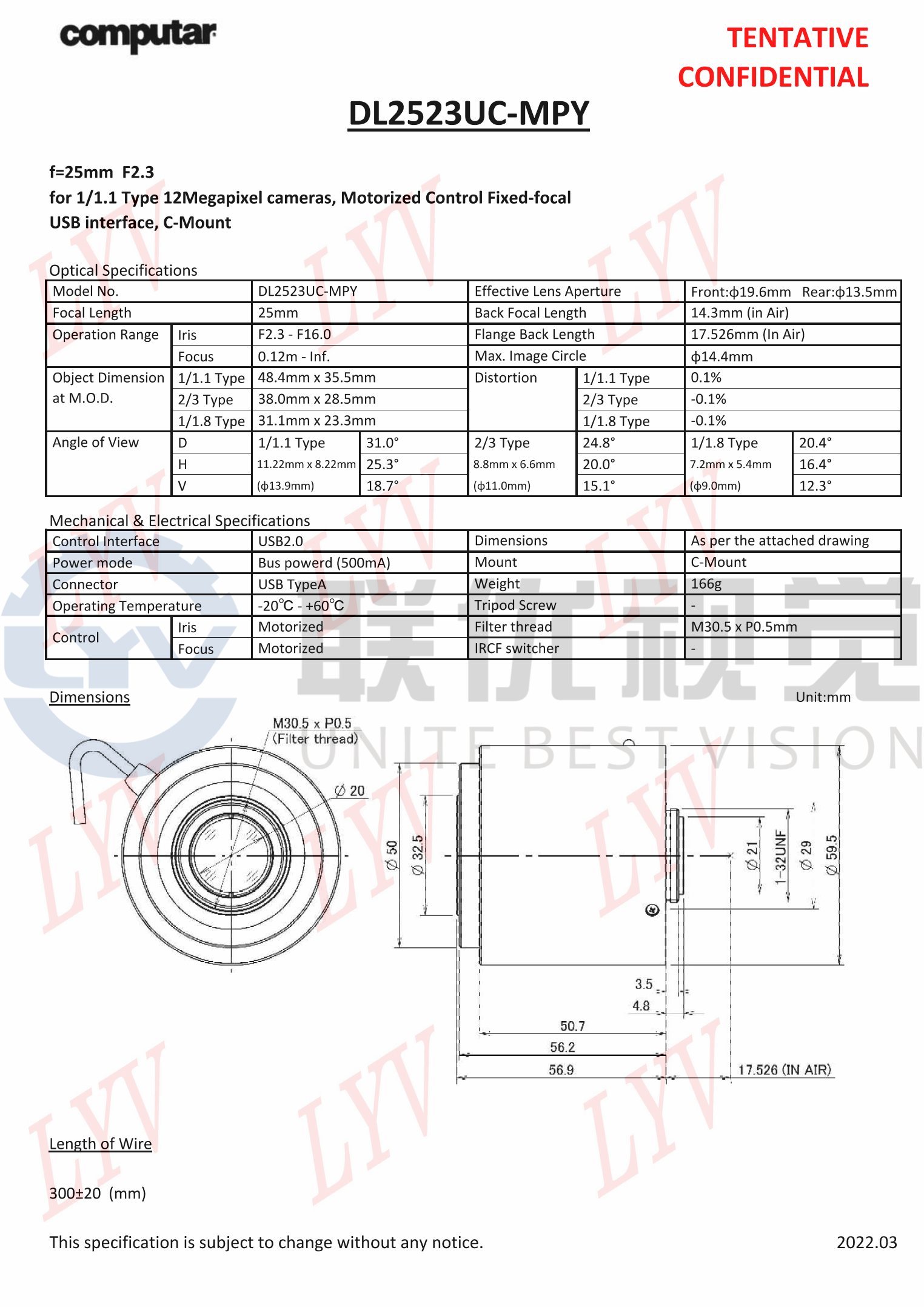 • 全新電動(dòng)鏡頭,可通過 USB 供電和控制(適用于 I2C 版本)